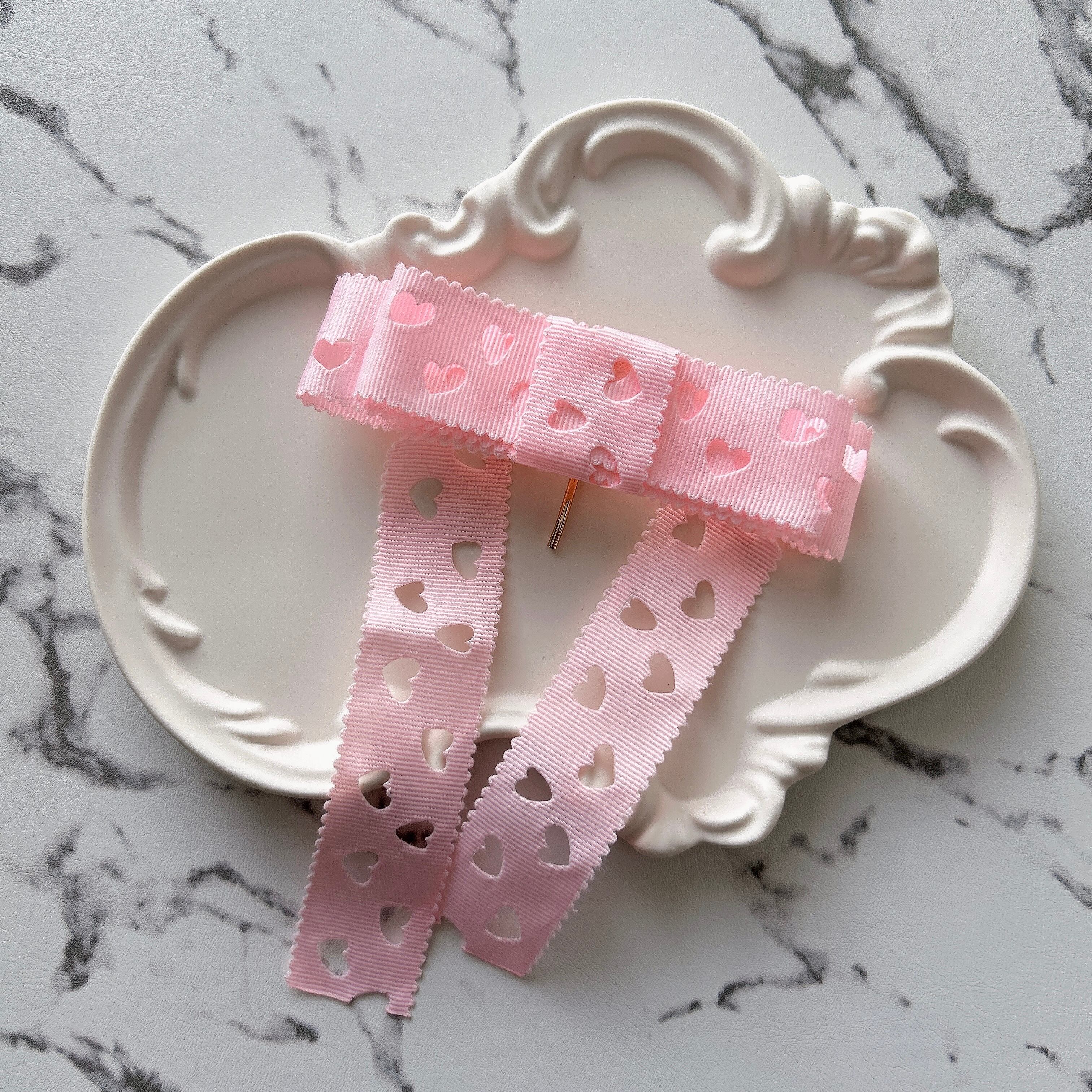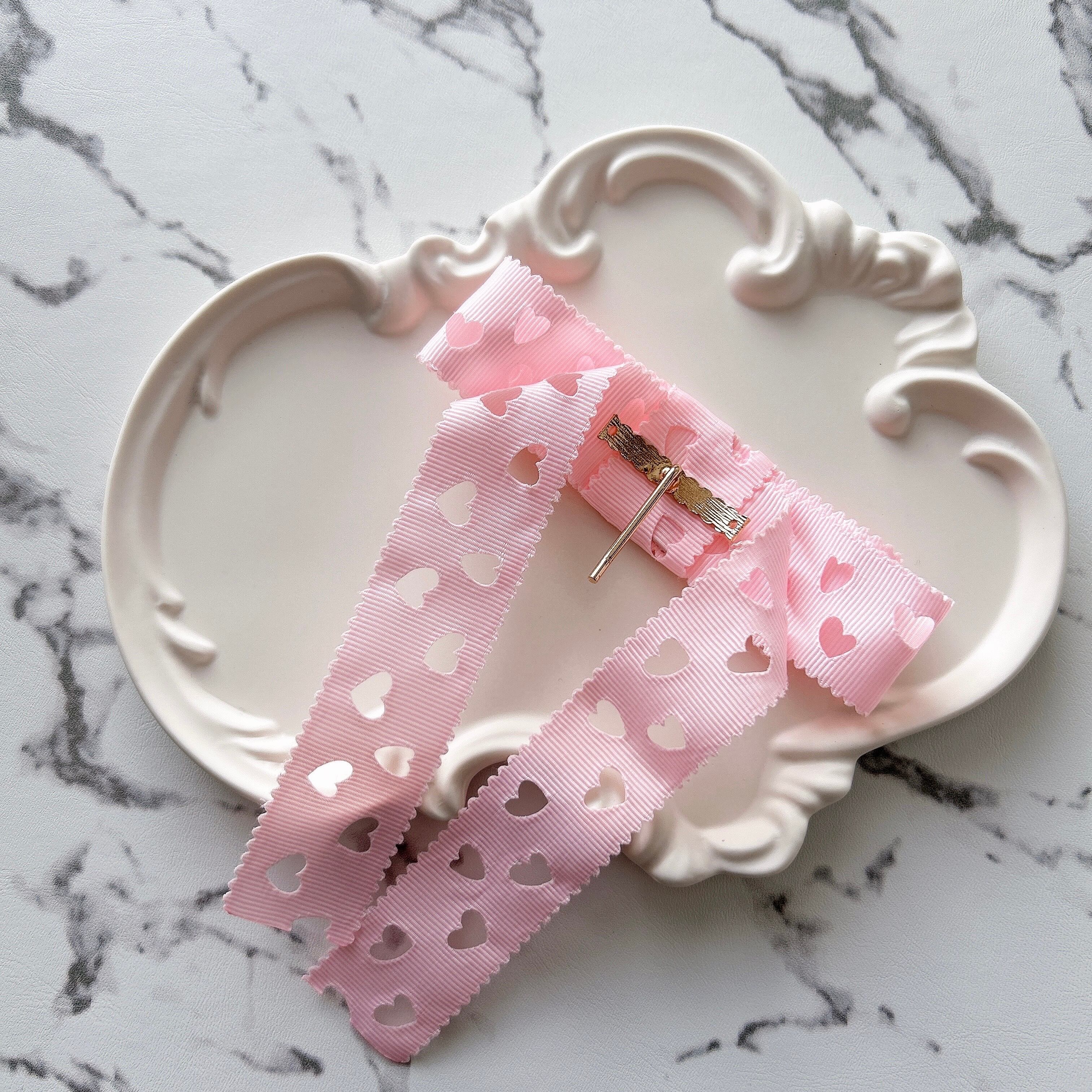 ハートくり抜きたらりんリボン ピンク